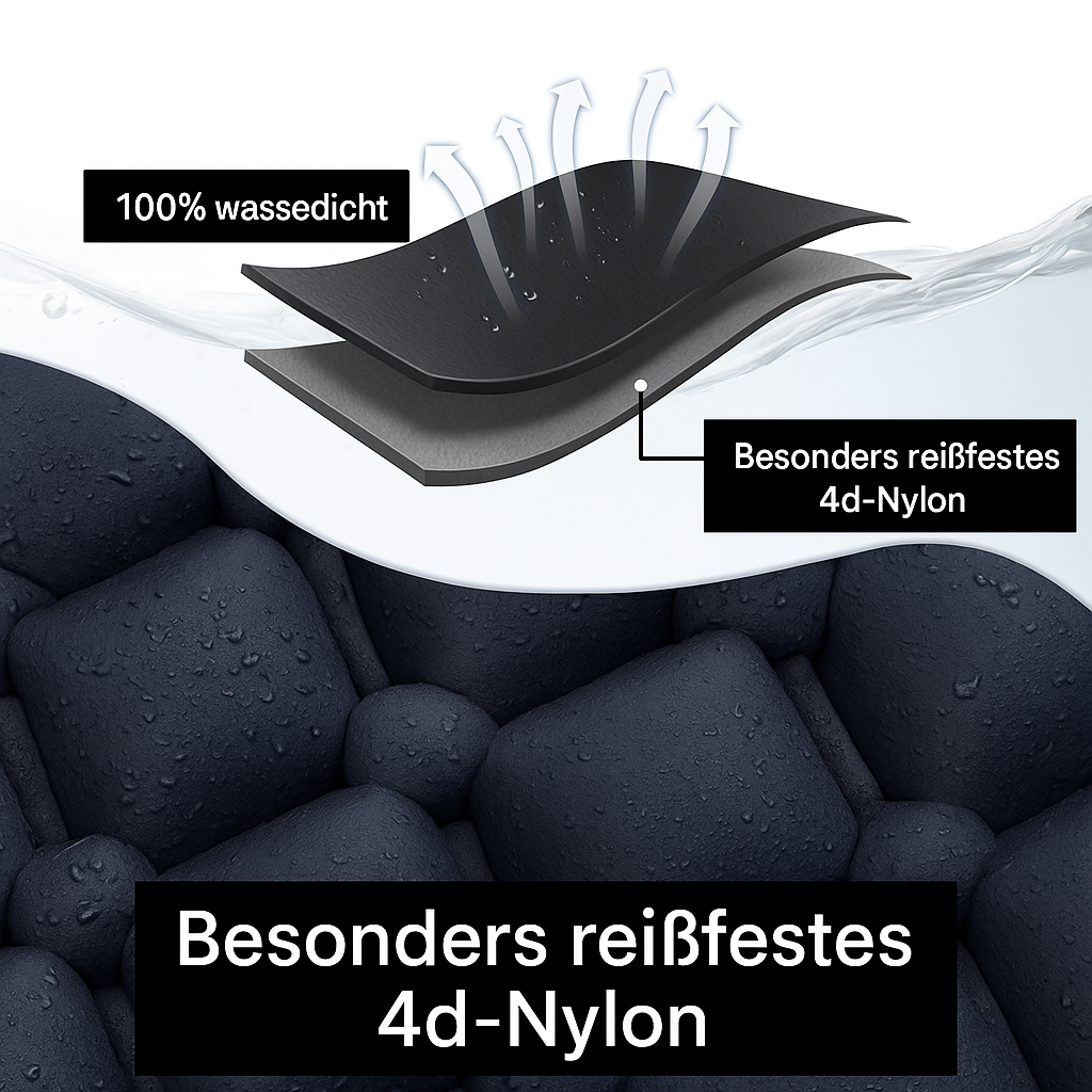 Extrem reißfest, druckbeständig und wasserdicht - diese Schlafmatte hält allen Abenteuern stand, ist unaufhaltsam selbst im Regen oder im rauen Gelände und kann sogar als Luftmatratze auf dem Wasser verwendet werden!