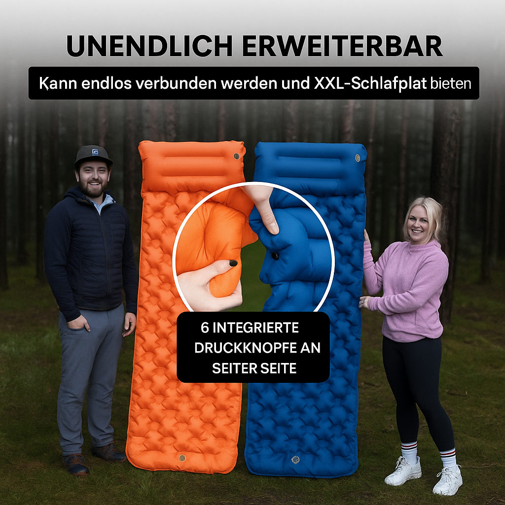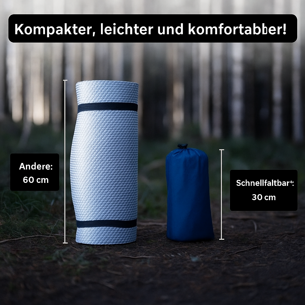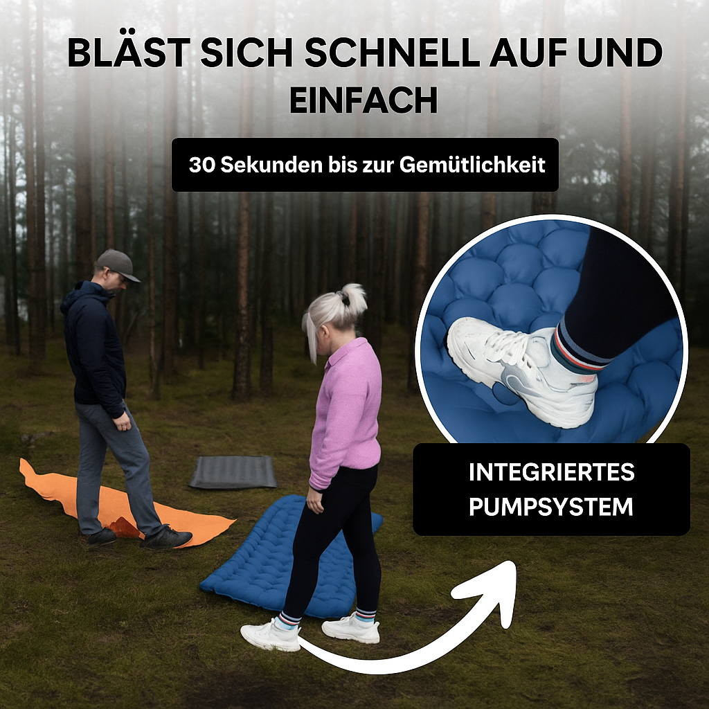 Keine langweilige Aufblaste mehr - trete einfach 30 Sekunden darauf, und die Schlafmatte bläst sich selbst auf. Maximale Komfort, kein Aufwand!