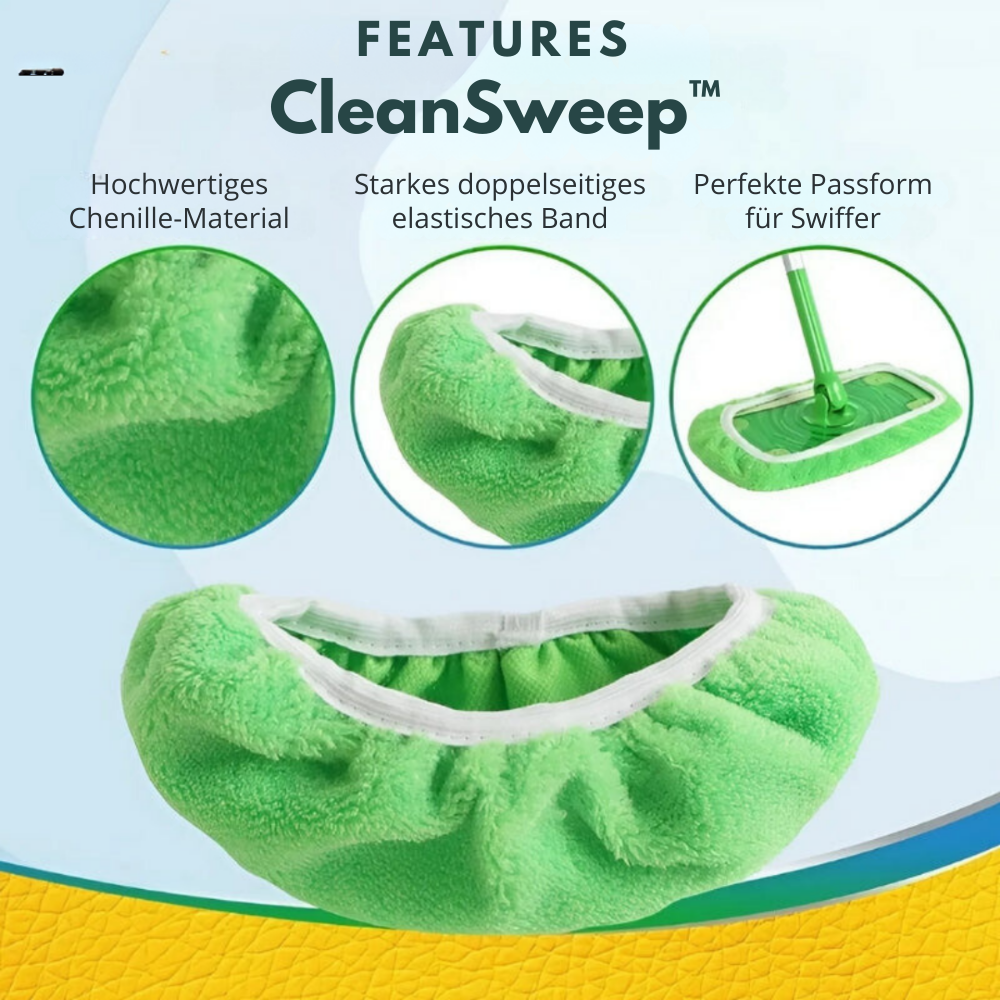 CleanSweep™ Mopptücher sind aus hochwertiger Mikrofaser gefertigt und können bis zu 150 Mal gewaschen werden, ohne ihre Reinigungskraft zu verlieren. Das macht sie zu einer langlebigen Wahl für den wiederholten Gebrauch.