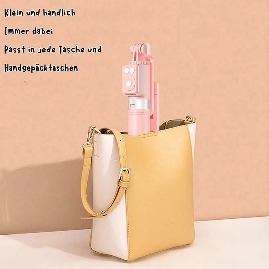 4. Drücke den Auslöserknopf am Griff, um dein Selfie zu machen, oder benutze die Bluetooth-Verbindung für eine freihändige Bedienung.