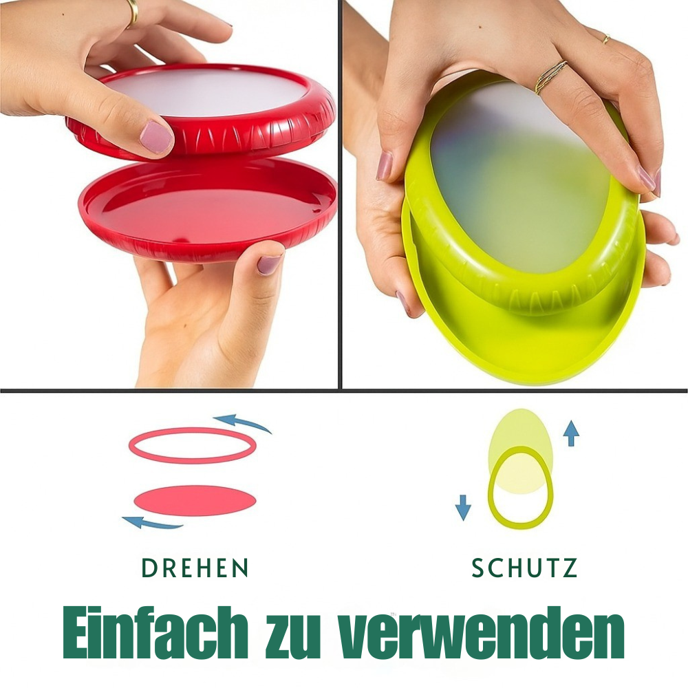 Greenkeeper™ verfügt über einen fortschrittlichen Silikonverschluss für eine perfekte luftdichte Versiegelung. Dies hält Ihr Gemüse und Obst länger frisch, ohne Geruchsbelästigung oder Feuchtigkeitsansammlungen.