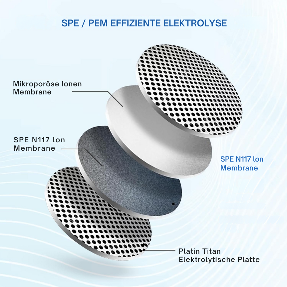 ✔️ Intelligente Elektrolysetechnologie – erzeugt bis zu 1600 ppb H₂ in 3-10 Minuten