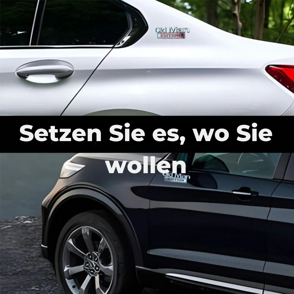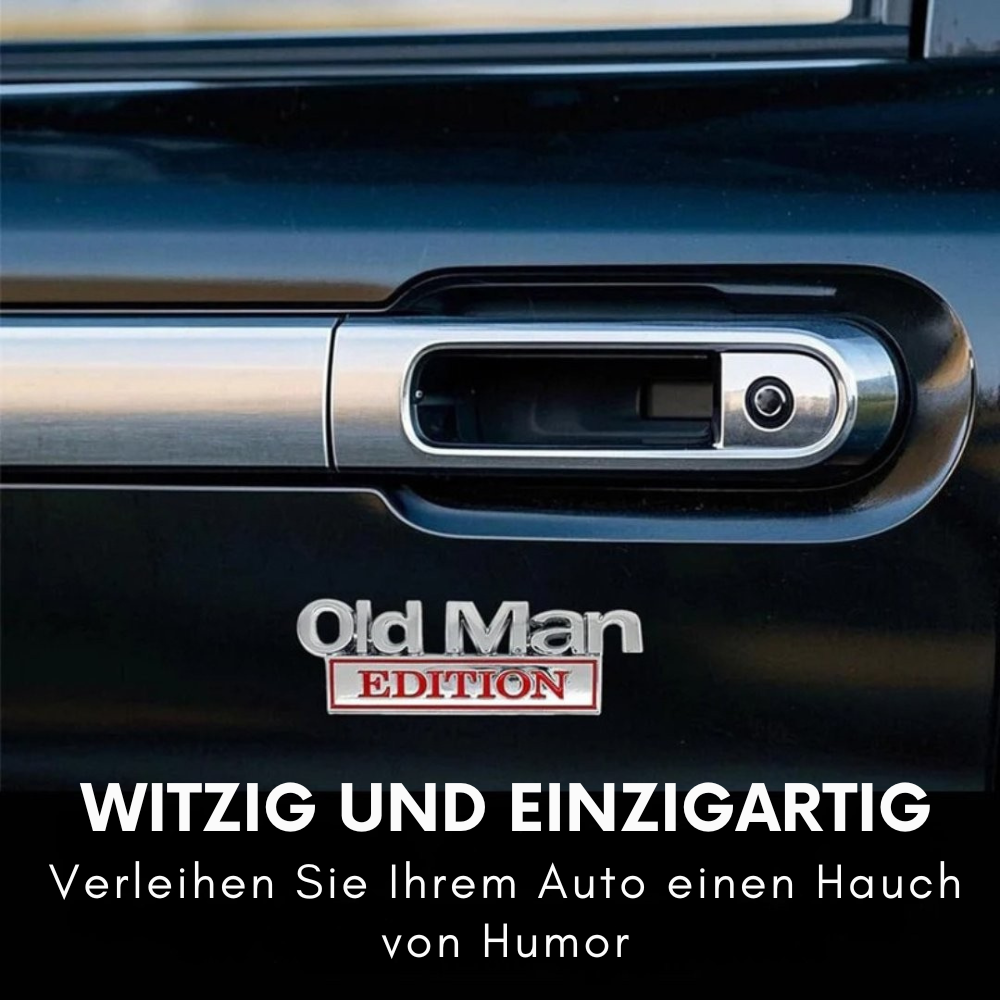 Mit OldManEdition™ geben Sie Ihrem Auto eine individuelle Note und sorgen gleichzeitig für Lacher bei anderen Fahrern. Das witzige Abzeichen lässt sich kinderleicht anbringen und setzt ein klares, humorvolles Statement.