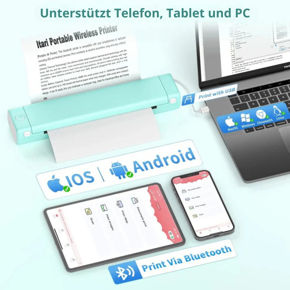 Mit dem eingebauten 1200-mAh-Akku können Sie bis zu 120 Seiten A4-Thermopapier in Folge drucken. Das macht den Drucker perfekt für lange Arbeitstage, längere Reisen oder Situationen, in denen Sie schnell und zuverlässig Dokumente drucken müssen.