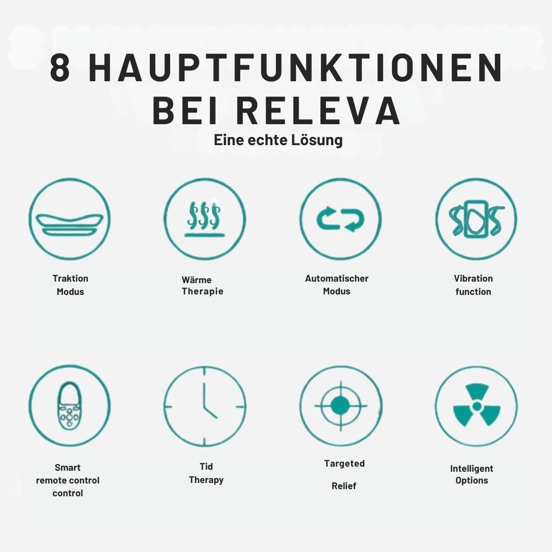 Releva™ ist ein fortschrittliches Behandlungsgerät, das sanfte Traktion, Wärmetherapie, Vibrationsmassage sowie die neue seitliche Entspannungsfunktion nutzt.
