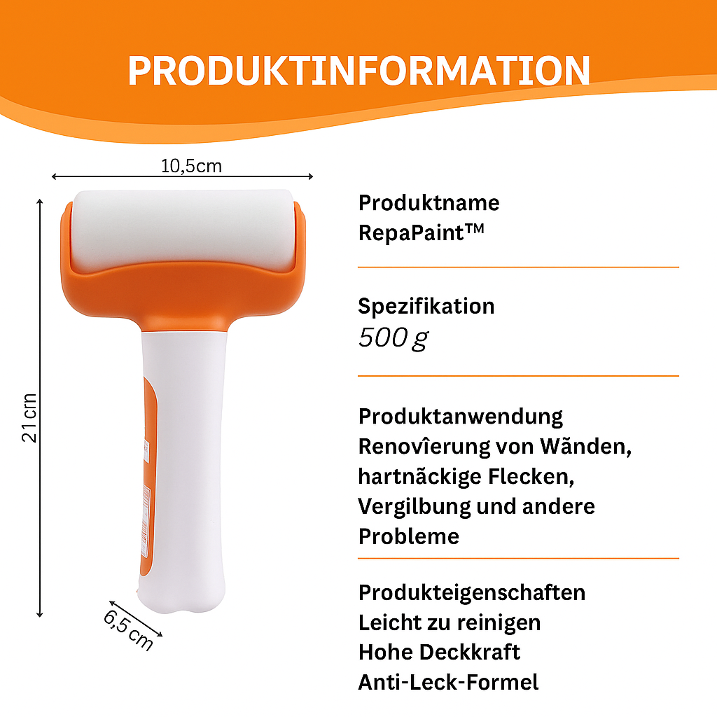 RepaPaint™ ist die clevere Lösung für Wände, die bessere Tage gesehen haben. Egal, ob es sich um Flecken von abgebenden Möbeln, Kreidestriche von Ihren Kindern oder Kratzer aus dem Alltag handelt – mit diesem praktischen Stift bringen Sie Ihrer Wand in Sekunden ihren frischen Look zurück. Kein Farbeimer notwendig, kein Stress. Einfach auffrischen, trocknen lassen, und schon sind Sie fertig.
