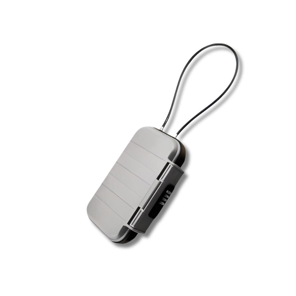 SafeBox™ ist kompakt und aus strapazierfähigem ABS-Material gefertigt. Dank des wasser- und stoßfesten Gehäuses sowie des flexiblen Stahlkabels ist Ihr Sicherheitsschloss immer gut gesichert, egal wo Sie sind.