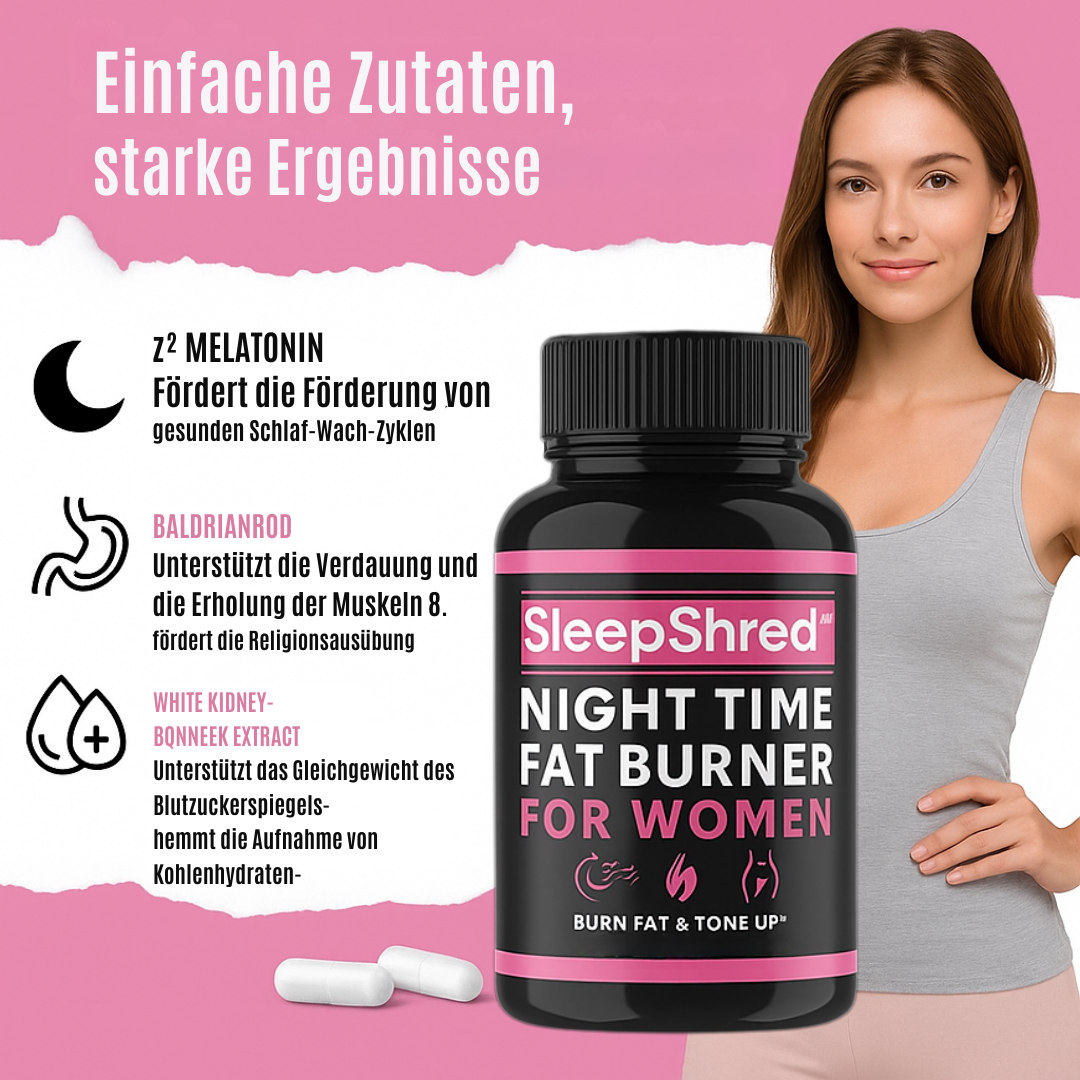 SleepShred™ ist ein klinisch dokumentierter Fettverbrenner, der speziell für Frauen entwickelt wurde, die auf natürliche und effektive Weise abnehmen möchten – während der Körper die Ruhe und Erholung erhält, die er braucht.