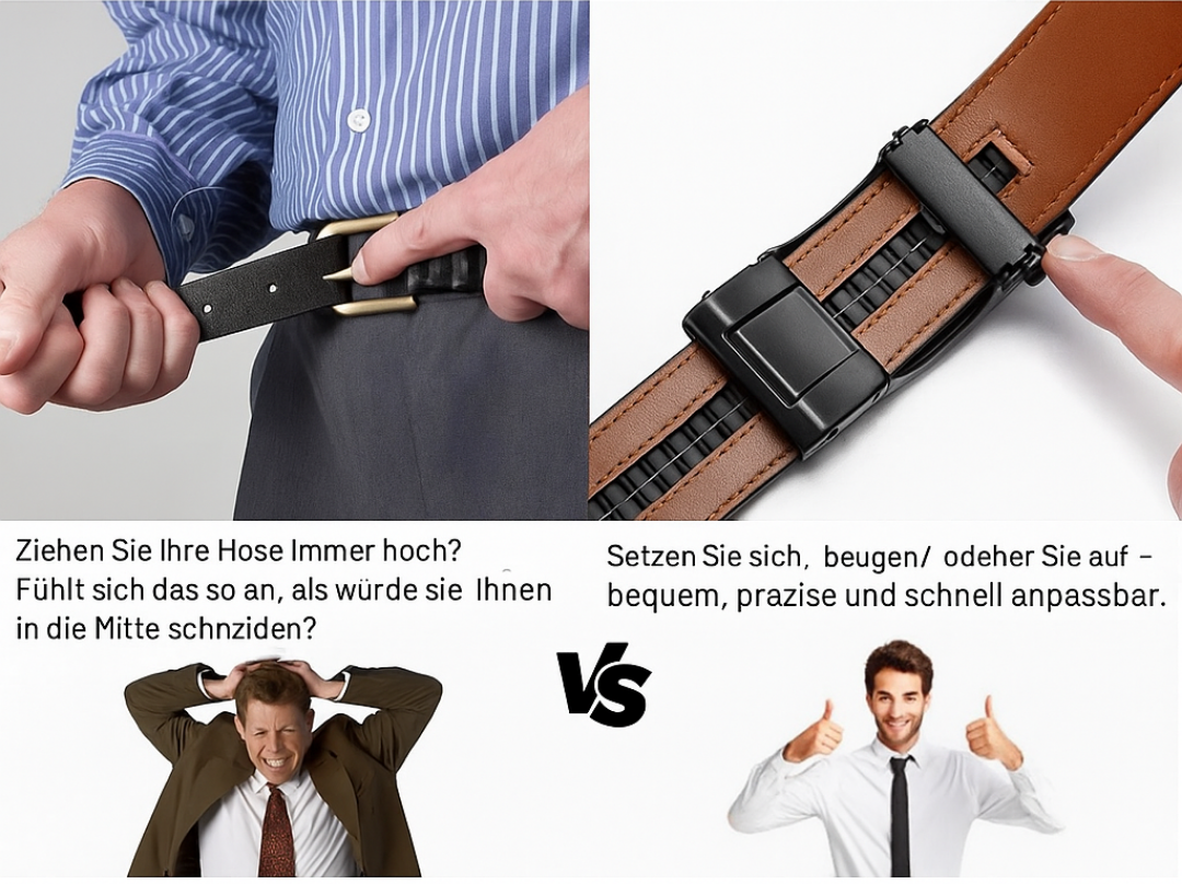 ✅ Smartes Klicksystem – Schiebe den Gürtel durch die Schnalle, höre das Klicken. Lösen Sie ihn einfach mit dem versteckten Griff.