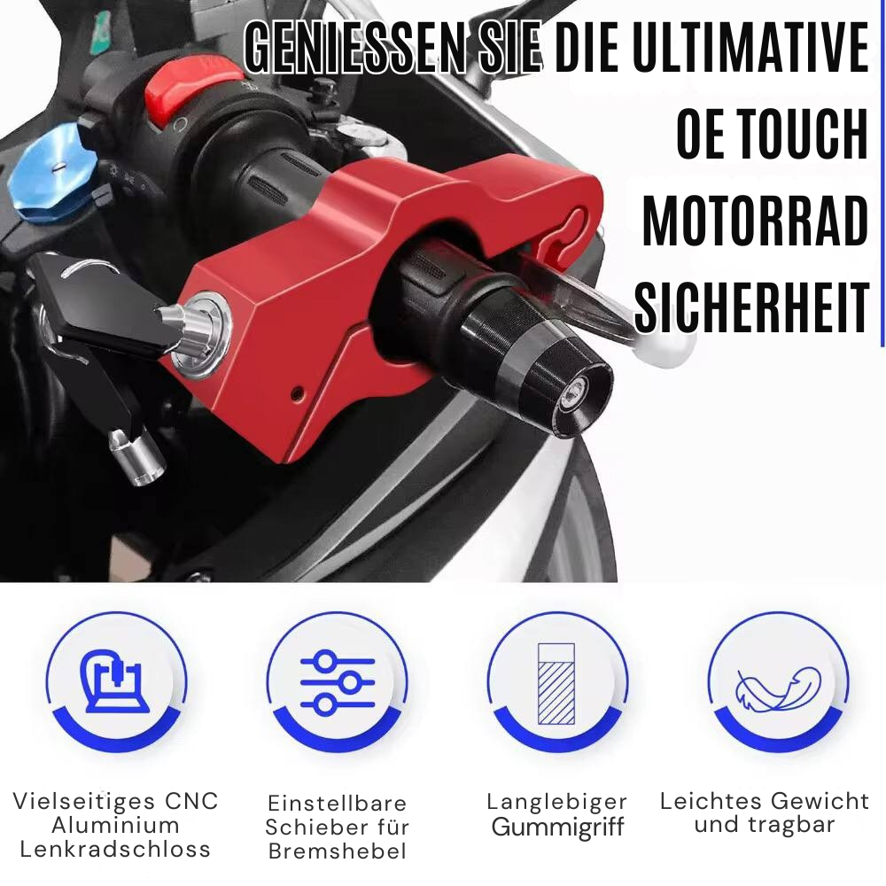 TurboLock™ ist das geniale Anti-Diebstahl-Schloss, das sowohl den Gasgriff als auch die Vorderbremse gleichzeitig sichert – und es unmöglich macht, das Motorrad zu starten oder zu bewegen.